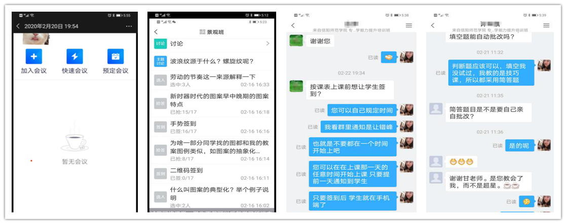 甘露老师作为系主任,不断发挥先锋模范作用,认真钻研“超星学习通”APP和校园网络教学平台的各项功能及技巧,同时结合“腾讯会议”APP和微信群聊,总结出一套和专业课程相适应的网络教学方法,使课堂教学、师生互动、作业测验、纪律检查等各个环节分类管理、切换自如,并通过网上教学实验发现效果良好,学生讨论和回答问题比课堂更加积极,逐将此方法推荐给本院其他老师。同时,每当学校交流群里有老师咨询时,她都是知无不答、积极帮助,和其他教师一起共同做好“停课不停学”的各项工作。