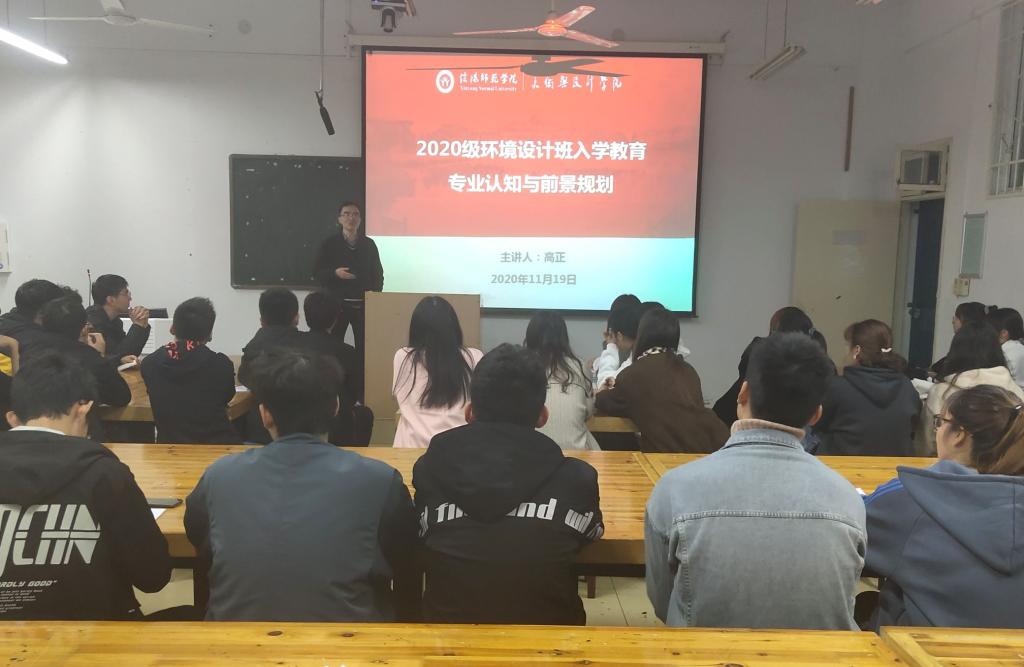 为了使beat365官网20级环境设计专业新生能更好的了解所学专业内容,做好大学期间的学习及规划,11月19日,beat365官网在艺术楼308教室召开环境设计专业认知与前景规划讲座。全体20级环艺专业新生参会,会议由beat365官网辅导员胡霁芳主持,环境设计系主任高正博士主讲。