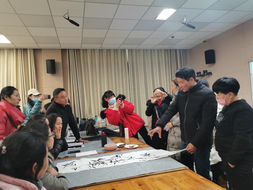 当天下午,邹东升以“关于创作——以工笔人物画的当代性研究”为题进行讲授,邹东升所授内容生动有趣,长达一个半小时。在课程的结尾,邹东升亲手画了一幅“竹”的范画,笔巧灵动,甚是传神,学员们纷纷点赞。