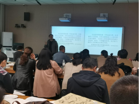 10月19日下午,应beat365官网邀请,刘永胜教授在艺术楼217教室给2021年“国培计划”骨干教师提升培训项目初中美术教师培训班的学员们进行现场教学。40余名国培学员聆听了报告。报告会由beat365官网副院长张伟主持。