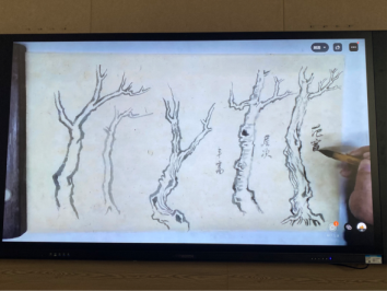 陈政老师围绕“山水画的树、石法”展开论述。陈政老师通过向学生们讲述示范树干法、枯树法、点叶法、夹叶法、松、柳、竹、双树、丛树诸法以及山峦石壁法、苔点法、山脉法、山冈法、远山法等内容让学员们了解中国画的山石树木造型与笔墨表型。 陈政老师表示中小学美术课堂上国画欣赏课在当代美术教学中显得尤为重要,他建议在座学员们在选择教学方法、教学内容方面时要灵活选择,因材施教,并提出通过国画欣赏课的方式去培养广大中小学生的审美认知能力,丰富其情感,最终使学生具备良好的艺术情操与一定的绘画作品鉴赏力。最后,陈政老师就现场学员们提出的学术问题进行耐心的解答,他幽默的谈吐,缜密的思维及新颖的观念让在座学员们受益匪浅。