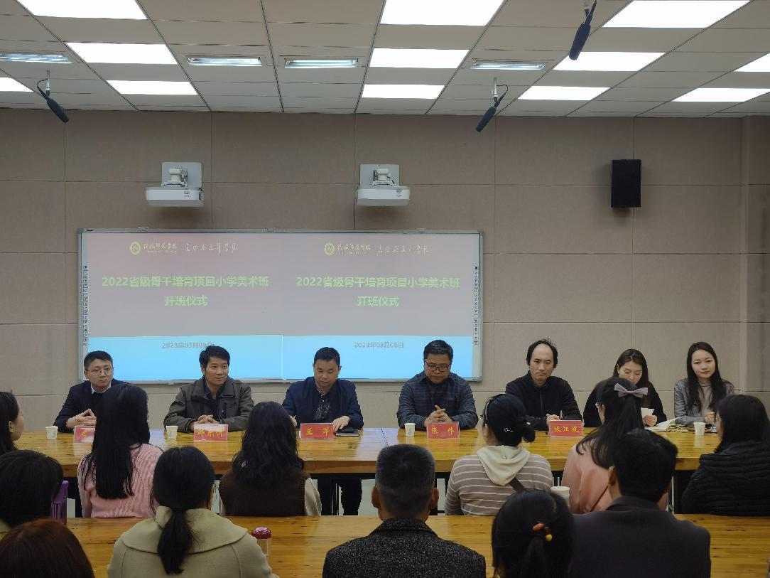 3月6日上午,河南省义务教育(2022)师资薄弱环节改善暨中小学教师素质提升工程——省级骨干教师培育项目小学美术教师班开班仪式在艺术楼217举行。beat365英国官方网站党委书记兰洋,院长邹东升、副院长张伟、张江波,党委副书记周刚,班主任邹青宸、明政以及各位省培学员共同参加了开班仪式,开班仪式由明政主持。