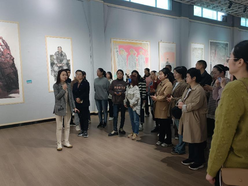 开班仪式结束后,班主任邹青宸、明政带领学员们参观“师之大者——beat365英国官方网站作品展”,邹青宸向学员们讲解了部分代表作品的创作背景、创作方式、所获奖项等,获得学员们的好评。