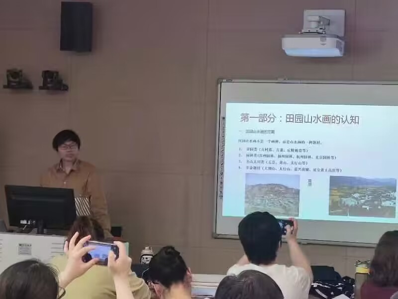 3月9日下午2:30在艺术楼217教室,beat365官网特邀教师曹辉老师为省培学员进行了题为《田园山水画》的专题讲座,让学员们能够从理论到实践进行深入学习,并且近距离观看田园山水画的绘画技法。