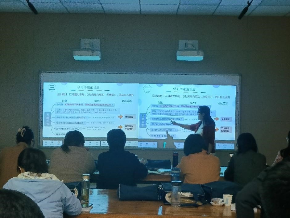 付老师通过具体的课程帮助学员理解何为主题小单元设计,怎样进行主题小单元设计,引出“大概念”该如何应用于实际的课堂教学。在欣赏小单元设计方面,付以华讲解了艺术创作的全过程,并带领学员分析理论知识内容如何运用到具体课程中去。课程过程中不断响起热烈掌声,课后学员积极讨论纷纷表示课程内容对于他们日后的教学活动帮助很大,通过这节课的学习受益颇多。