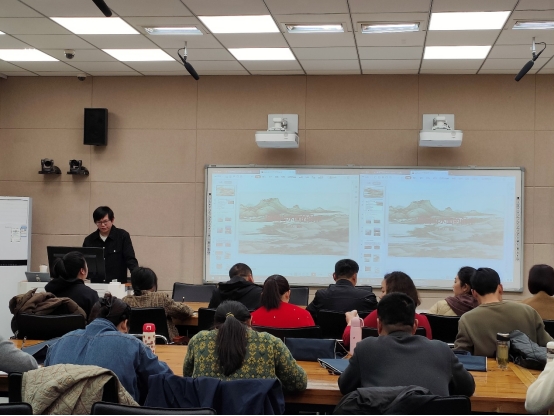 3月11日,应beat365官网邀请,曹辉老师在艺术楼217教室为省培学员作题为《田园山水画》的专题讲座,让学员们深入了解田园山水画的绘画艺术,并且近距离观看田园山水画的绘画技法。