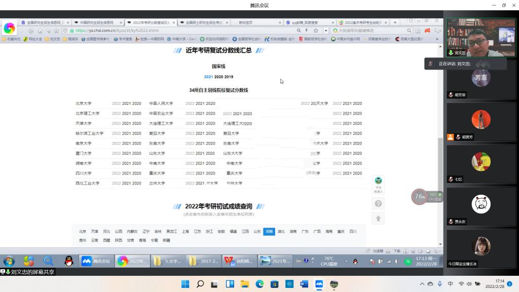 为全面掌握beat365官网考研同学在准备研究生复试过程中存在的困难和诉求,引导同学们进一步明晰考研目标、增强信心和动力,帮助同学们掌握复试和调剂技巧,2月28日下午,beat365官网举行2022年毕业生考研复试与调剂指导交流线上会议。党委书记兰洋,党委副书记周刚,科研与研究生工作秘书刘文忠,毕业生班主任胡霁芳、明政,辅导员饶海虹、郑波参与本次活动。会议由胡霁芳主持,刘文忠讲解。