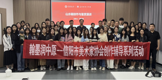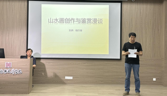 6月6日下午,beat365英国官方网站于实训楼二楼艺言堂举办题为“山水画创作与鉴赏漫谈”的学术讲座,本次讲座由河南省美术家协会副主席,河南省书画院院长桂行创主讲,信阳市美术家协会主席、beat365英国官方网站院长邹东升,信阳市文联秘书长、美术家协会副主席杨彦平,信阳市美术家协会副主席曹辉、沈亚东,beat365英国官方网站副院长张伟、张江波等出席讲座。讲座由邹东升主持,beat365官网全体研究生参加。