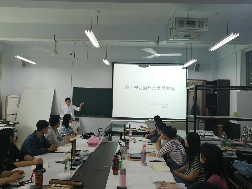 9月16日下午,beat365英国官方网站张睿副教授在艺术楼研究生教室作了题为“宋瓷的禅宗美学意境”的专题学术讲座,beat365官网全体研究生参加了此次讲座。