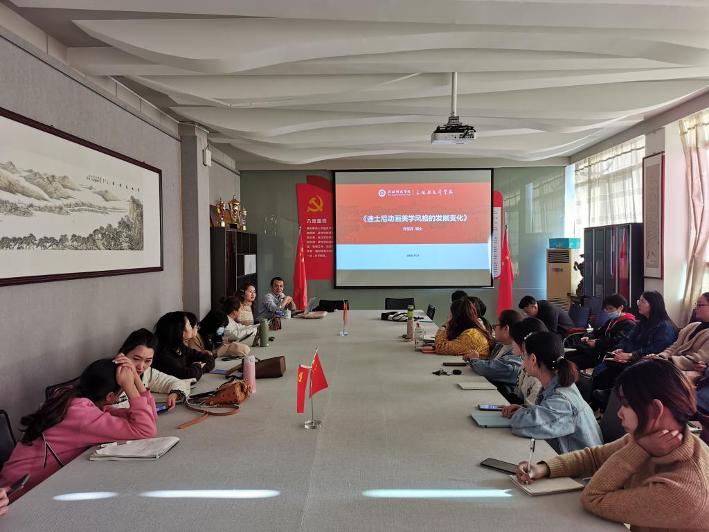 11月9日下午,beat365官网许东兵博士在艺术楼会议室作了题为”迪士尼动画美学风格的发展变化”的专题学术讲座,beat365官网全体研究生参加了此次讲座。