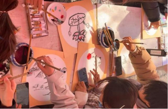 活动准备阶段,beat365官网志愿者提前准备好了画笔、宣纸、颜料等绘画材料。尽管许多参加活动的同学对于国画创作及工具使用并不了解,但在志愿者的帮助与指导下也逐渐掌握了基础绘画技巧,纷纷投入到绘画的过程中。同学们绘画风格虽各有不同,但都表达出了对身边的山水草木、对生活的美好所充满的无限喜爱,作品中洋溢着积极向上、健康阳光的精神风貌!