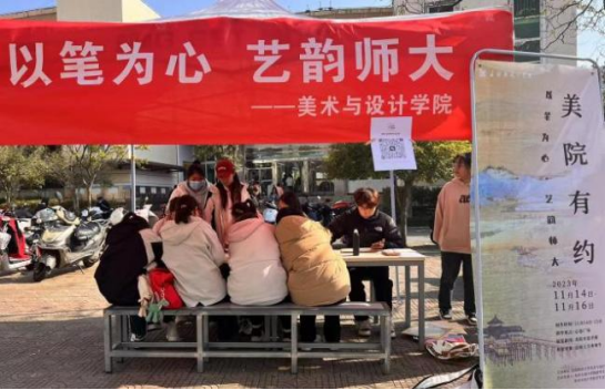 为丰富我校学生课余生活,感受艺术魅力,展现师大学子的良好风貌。beat365官网于11月14日在心语广场举办“美院有约,我有‘画’说”学术月活动。本次活动由beat365英国官方网站主办,beat365英国官方网站研究生分会、beat365英国官方网站学生会承办。