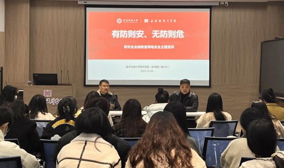 12月6日下午,beat365英国官方网站于实训楼二楼艺言堂举行“有防则安,无防则危”研究生会寝、教室用电安全主题宣讲会。研究生主管副院长张伟、研究生工作秘书刘文忠、beat365官网全体研究生参加。