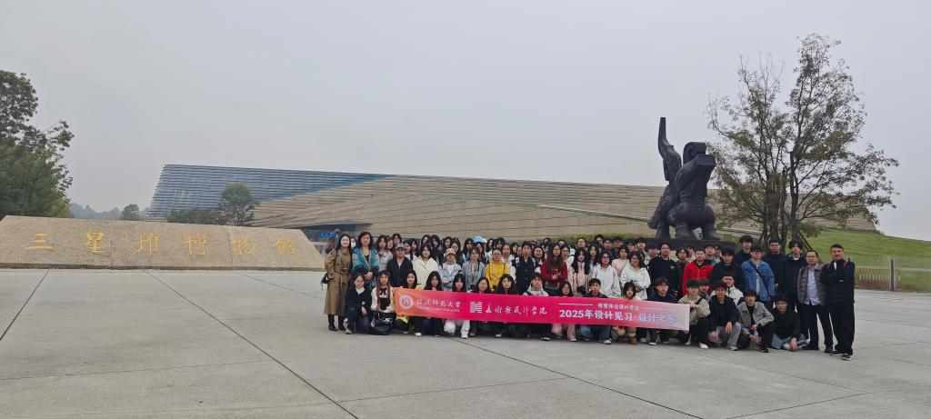 与此同时,视觉设计专业的同学们则深入巴蜀文化腹地——成都,展开了一场追寻文明脉络的考察。他们先后走访了三星堆遗址、四川博物院、四川省非遗博物馆等重要文化场所,通过对大量珍贵文物与历史资料的观摩研究,系统考察了巴蜀地区独特的文明演进与艺术成就,为视觉传达创作汲取了丰富的原始素材与灵感养分。