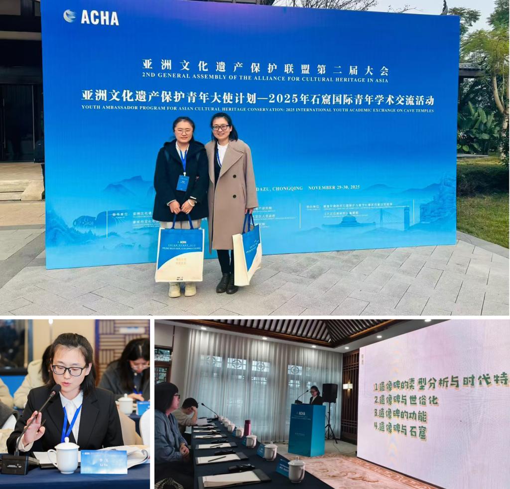 11月29日至30日,以“保护传承·创新共生”为主题的亚洲文化遗产保护青年大使计划——2025年石窟国际青年学术交流活动在重庆大足区成功举行。本次活动汇集了来自中国、柬埔寨、洪都拉斯、印度、意大利、巴基斯坦、斯里兰卡等国家的百名青年学者,共同围绕石窟寺保护研究、数字技术应用、文化遗产传播等议题展开深入交流。beat365官网青年学者李玉博士作为学院重点培养的优秀代表,受邀参会并作主旨演讲。