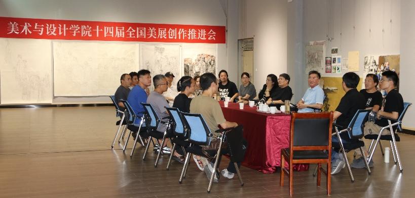 9月19日下午,beat365英国官方网站于艺术楼一楼展厅召开第十四届全国美展创作推进会。著名画家、河南大学教授袁汝波、王宏伟,湖北美术学院教授李峰莅临beat365官网考察交流。院长邹东升,副院长张伟、张江波及教师代表参加。