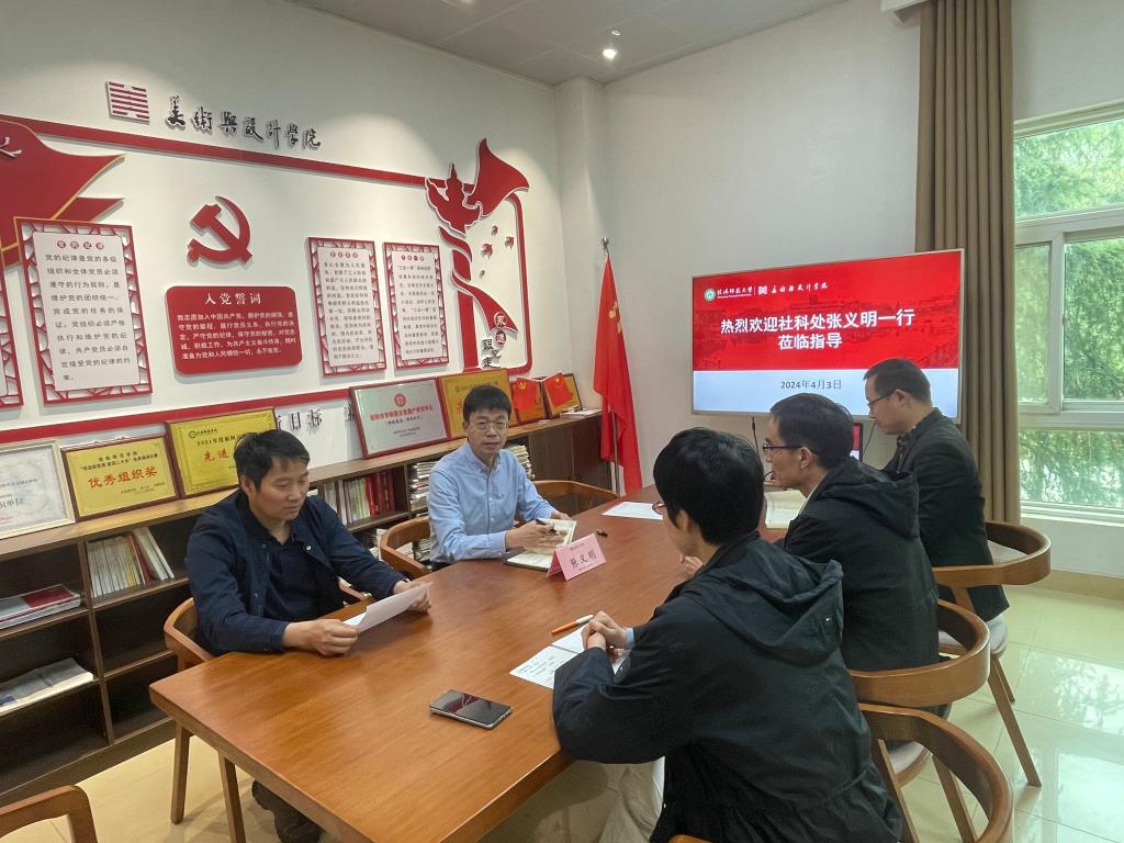 4月3日上午,社会科学处副处长张义明莅临beat365英国官方网站指导国家社科基金艺术学项目,beat365官网院长邹东升、副院长董建义及部分教师参加会议。