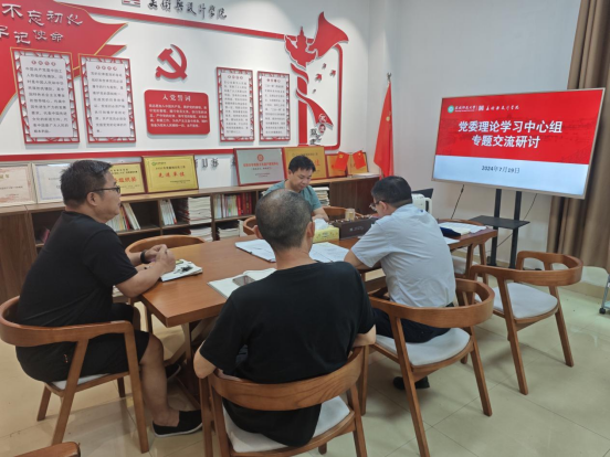 7月19日,beat365官网于艺术楼党建室举行党委理论学习中心组专题研讨交流,围绕“工作纪律、生活纪律”开展专题学习研讨。党委书记兰洋,党委副书记周刚,副院长张伟、张江波参加,会议由兰洋主持。
