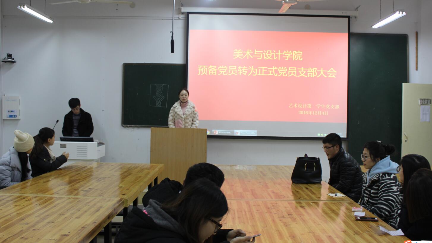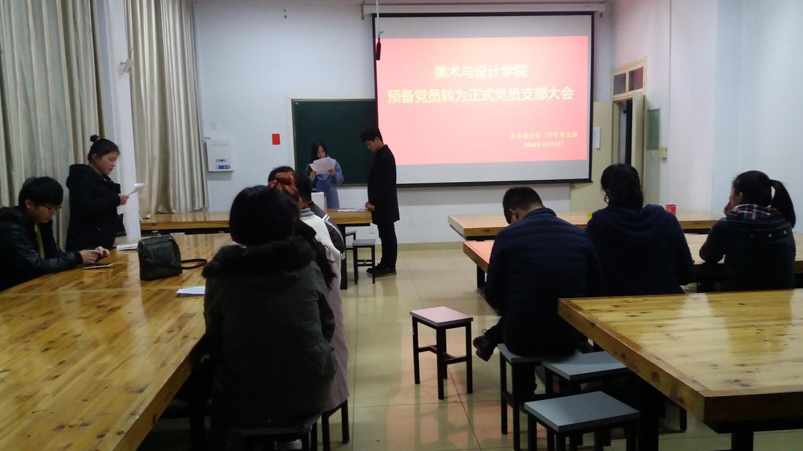 12月4日晚,beat365英国官方网站于艺术楼306、307、308教室举行了“预备党员转为正式党员支部大会”。会议由党支部书记施远、饶海虹、马玉环主持,学生党组织成员、预备党员参加了本次会议。