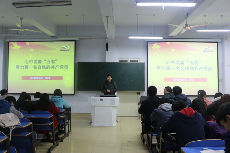 11月20日晚,美术学院党委书记周子良应邀为beat365官网分党校的入党积极分子作报告。美术学院团总支书记周贤亮,辅导员张锐、施远及美术学院分党校2015年第2期全体学员参加。