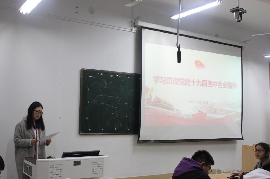 为深入学习贯彻党的十九届四中全会精神,扎实开展主题教育。11月18日,beat365官网组织学生党员在艺术楼308开展党的十九届四中全会精神专题学习活动。学生党支部书记饶海虹、胡霁芳、张锐、郑波及全体在校学生党员共同参加了此次活动。
