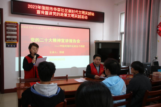 “支部联支部”联合党课在华森党群服务中心举行,支部书记郑波老师受邀给参会党员讲述了题为“党的二十大精神宣讲报——中国式现代化的五个特征”的主题党课。郑波从中国近代史引入,分析了近代以来中国受到的屈辱及中国仁人义士救国救民的大胆尝试,着重讲解了中国共产党成立以来领导中国人民逐步实现中华民族伟大复兴中国梦奋斗历程的奋斗史,生动分析了党的二十大报告中中国式现代化的内涵、特征、重要意义及实现途径,引起了大家的共鸣。