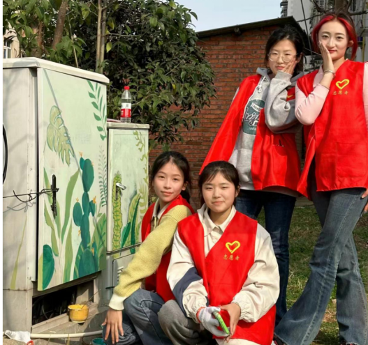 此外,上午9点16名党员及青年志愿者一早来到华森社区,提起画笔,用自己的专业特长去美化社区电表箱,提升社区文化内涵。每一幅图画不仅仅是图画,还是一种声音,传达了志愿者对社区“爱”的声音。志愿者们一点一勾一提,经过一天的努力,一幅幅有声有色的“春景”出现在社区的电缆箱上,平时没人去观览的电缆箱就在一个下午突然走红,成为了社区的“新兴红人”。