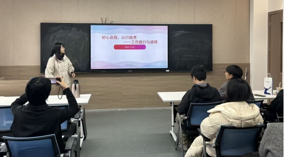 赵梦珂以真实学习、工作片段切入,讲述从疲惫、窘迫,到从容应对的心态转变,强调成长源于直面不足、与不完美和解,鼓励同学们珍视每一次任务体验:“好的成经验,坏的成阅历”。尹冰冰聚焦研究生会生活部服务实践,介绍部门“服务学院、便利同学”的宗旨,通过解决日常问题提升同学幸福感,强调团队协作与跨部门联动对锤炼综合能力的重要性。
