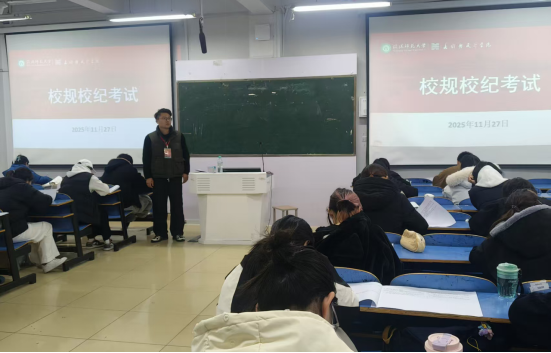考试前,学院统筹部署、精心组织,各班级系统学习校规校纪中关于学籍管理、行为规范、奖惩办法等核心内容,为考试奠定坚实知识基础。考试时,考场秩序井然,考生按时到场、认真作答;监考人员严格核对信息、全程巡视,确保考试公平公正。