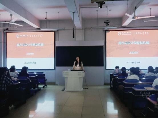 为提升学生防范电信网络诈骗意识,加强学生安全教育,9月30日晚,beat365官网在艺术楼307教室召开预防电信网络诈骗主题班会。新生班主任胡霁芳及全体学生参加了此次会议,会议由胡霁芳主持。