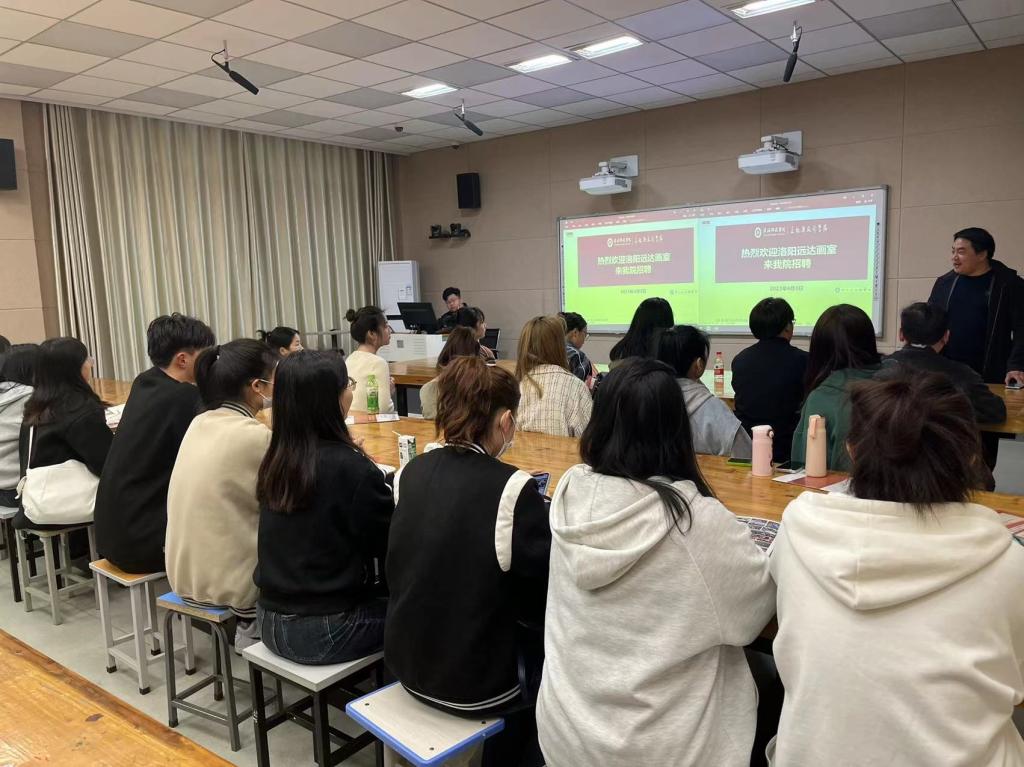 为了做好毕业生就业工作,助推2023届毕业生顺利就业。2023年4月3日,洛阳远达画室在beat365官网艺术楼217教室举办信阳师范学院专场招聘宣讲会。画室校长时跃国一行5人及30余名应届毕业生共同参与,会议由郑波主持。
