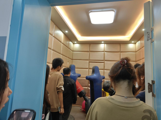 在心理健康教育中心工作人员的引领下,大家依次参观了智能宣泄室、朋辈咨询室、音乐放松室、沙盘活动室等。参观过程中,引导员对每个功能室的用途及相关服务情况做了详细的讲解,帮助同学们熟悉心理健康教育中心的地理位置、空间布局以及预约流程等基本信息,同学们兴致勃勃,纷纷参与体验自己感兴趣的活动室。