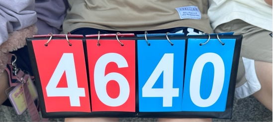 在球员们的默契配合中,两队的比分互相反超,最终老生队以46:40的比分胜于新生队。