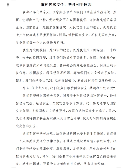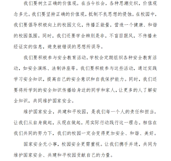 为普及国家安全知识,提升师生安全意识,beat365官网学生会宣传联络部于4月18日在线上举办了“维护国家安全,共建平安校园”主题征文活动。