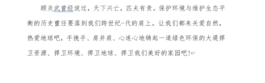 此次活动的成功举办,不仅提高了同学们的环保意识,也进一步推动了校园环保文化的深入发展。通过这次征文活动,同学们更加深刻地认识到保护环境的重要性,纷纷表示将在日常生活中积极践行环保理念,从小事做起,为地球环境贡献自己的一份力量。