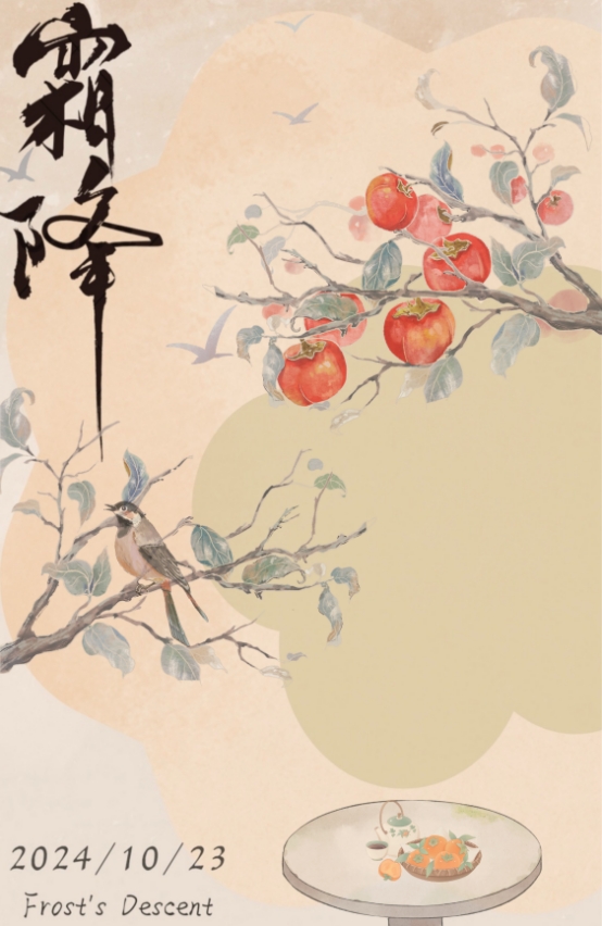活动期间,同学们积极响应,纷纷投稿,每一件作品都是对霜降节气独特魅力的个性化诠释。有的设计巧妙捕捉了秋日落叶纷飞、霜花点缀的自然景观,以细腻的画风和丰富的色彩层次,勾勒出一幅幅宁静而壮美的秋日画卷;有的则采用抽象艺术手法,将霜降的意象与中华传统文化元素相融合,创造出既现代又富含文化底蕴的视觉作品,展现了青年学子独到的艺术视角。