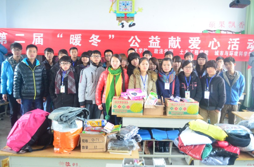 “暖冬,我们在行动”是经美术学院团总支倡议,由美术学院学生自发组织的冬季爱心公益活动,活动在每年的冬季开展,已坚持三年,渐渐成为学生志愿服务的一个品牌活动。本次活动于今年11月初便开始筹备,分为校园公益宣传、艺术设计作品校园义卖、义卖收入捐助3个阶段。活动自开展以来,共从全院学生中征得艺术设计作品400余件;活动所得款项为信阳市特殊教育学院,信阳市敬老院购买了大量生活用品,为老人们购买了棉手套、棉袜、暖手宝等冬季保暖、御寒用品;也为孩子们购买了充足的学习用品及衣物。(美术学院 周贤亮 乔小慧 苏雅 陈志彤 供稿)