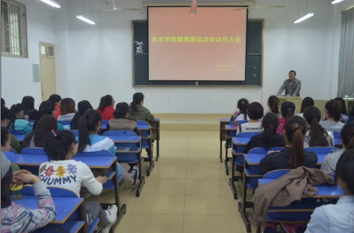 为鼓励健美操运动员们积极训练,鼓舞大家的士气。3月22日下午,美术学院在艺术楼307教室举行了健美操运动员动员、交流会,美术学院团总支书记周贤亮老师及此次健美操教练、领队、运动员参加了本次动员会。