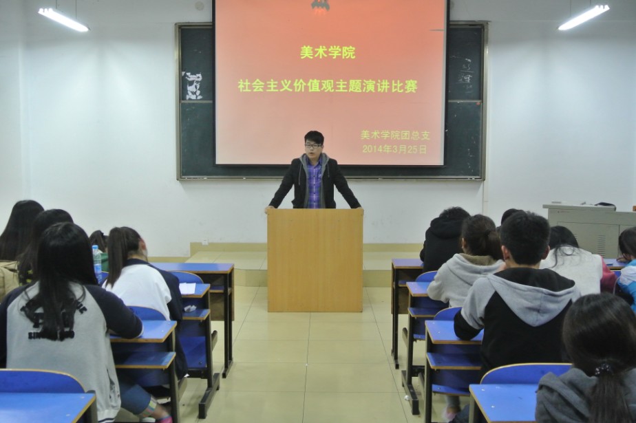 为大力进行爱国主义和社会主义荣辱观教育,坚定学生的理想信念,帮助学生树立正确的人生观、世界观和价值观。3月25日,美术学院于艺术楼307教室举行了以“社会主义价值观”为主题,的演讲活动,美术学院团总支学生会学生干部担任评委。
