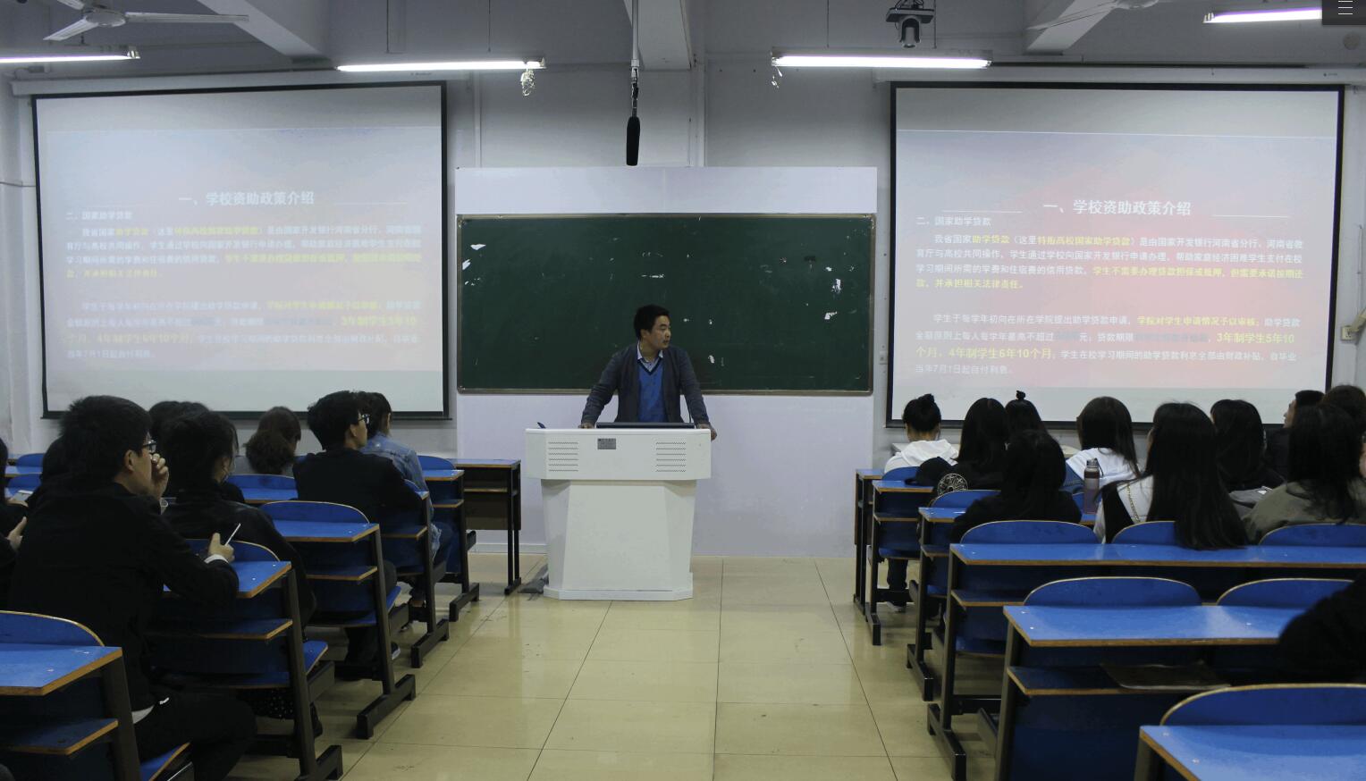 会上,郑波以PPT形式系统地向同学们介绍了学校现有的资助政策、资助项目申请流程、校园地贷款还款流程,并强调了按时还款的重要性。随后,重点讲述了关于毕业生诚信教育的问题,提醒同学们享受国家资助后要按时还贷、提前还贷。同时,希望同学们走出校园后要积极宣讲国家资助政策。