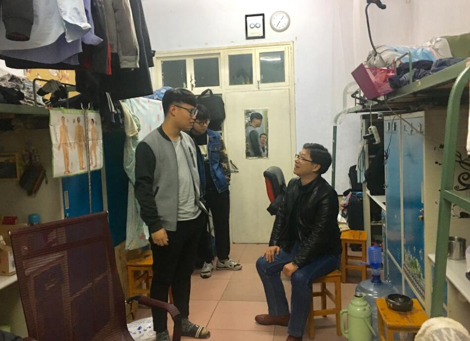 杨轶中一行首先来到了大四学子的宿舍,就宿舍卫生、用电规范、线路安全等问题进行了全面的排查。每到一处他都仔细询问同学们的日常学习和生活情况,了解学生在考研、考证、实习等方面的准备情况,希望同学们今年可以明确自己的工作方向,并为之奋斗,以便毕业后快速适应社会生活。走访过程中,杨轶中对卫生情况较好的寝室提出了表扬,对较差的寝室提出了批评和指正,他边检查边督促学生们做好整改工作,并提出了要做到勤打扫,不乱拉电线,不违章使用高功率电器等几点要求,杜绝安全隐患的发生。随后各班辅导员走访了本班宿舍,排除了可能存在的安全隐患,并叮嘱同学们秋冬季节天气干燥要做好防火工作,同时随着天气转凉更要做好保暖工作,保持良好的身体素质。