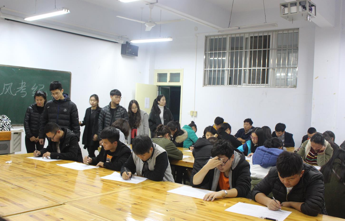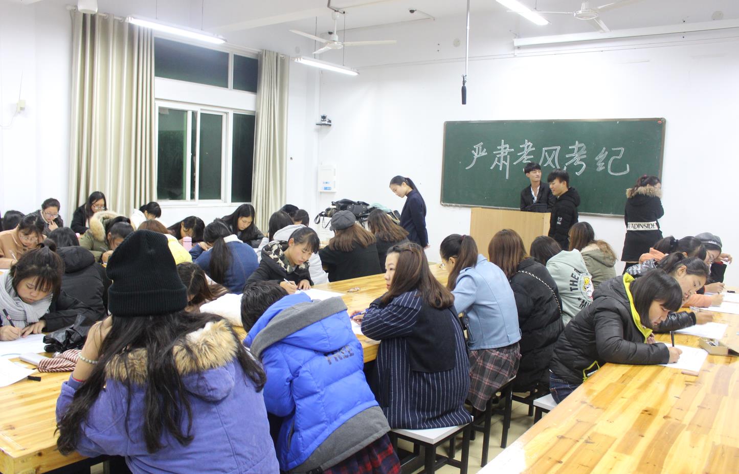 为加强校风学风建设,增强广大学子纪律意识,11月16日晚,beat365英国官方网站团委在艺术楼216、217、306、307、308教室组织全体大一新生进行校规校纪考试。辅导员饶海虹及美院团委学生会成员监考。