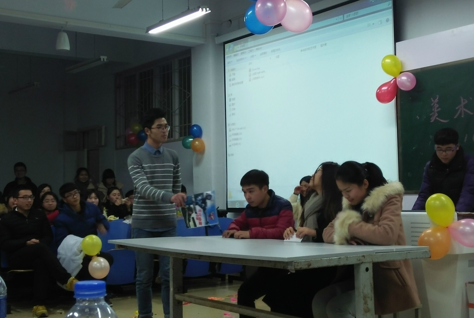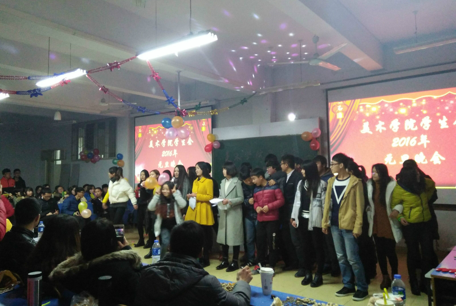 辞旧迎新欢庆元旦佳节。12月29日晚,beat365官网学生会2016年元旦联欢晚会在艺术楼307盛装亮相。辅导员老师张锐,施远莅临晚会现场,与学生会全体成员共同观看了本次晚会。