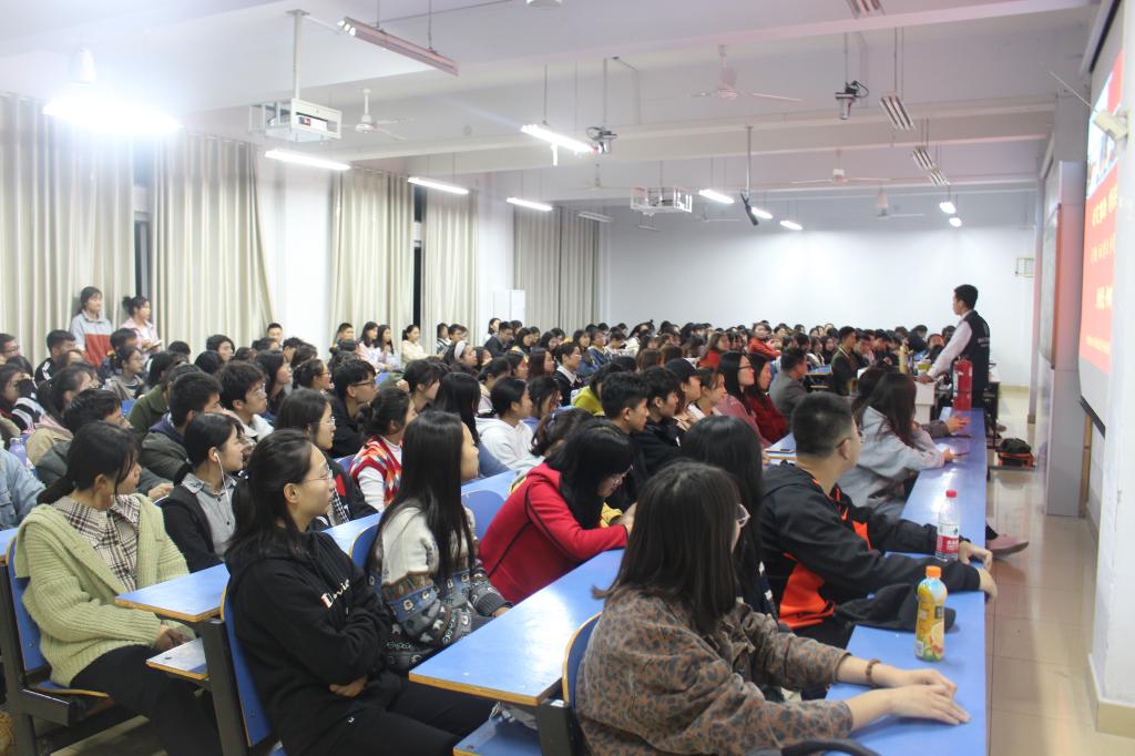 为进一步提高学生的消防安全意识和自防自救能力,打造安全、和谐校园。11月6日,beat365官网于艺术楼307室召开了以“减少灾害风险,建设安全城市”为主题的消防知识普及专题讲座。beat365官网团委老师郑波,辅导员胡霁芳、明政,学生会纪检部全体成员及17-19级各寝室长共同出席此次讲座。本次讲座由主讲教员柳鹏宇讲解。