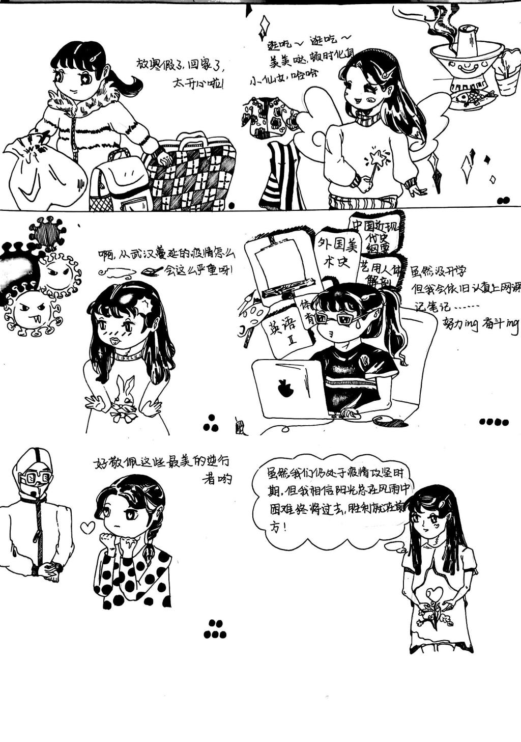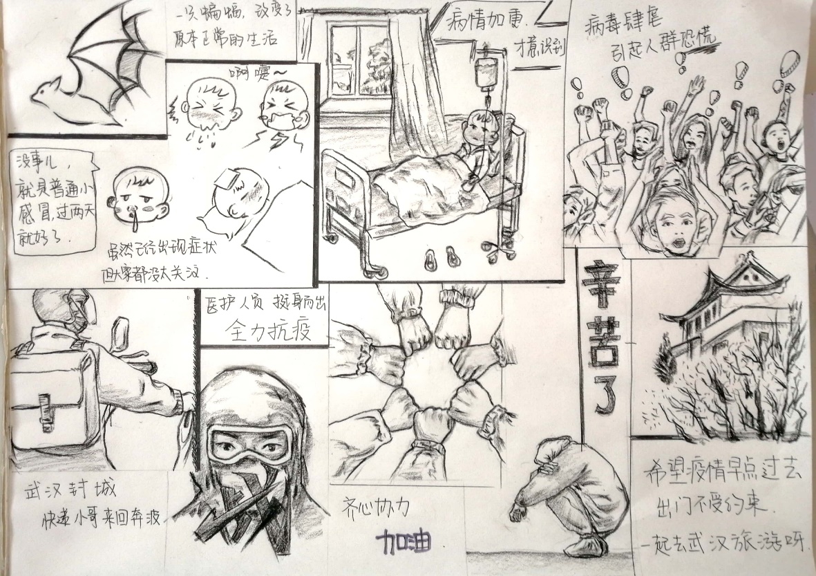 本次“心”漫画的成功举办,一方面有助于树立当代大学生健康的心理素质,提高审美素养,另一方面也增强大学生们勇敢面对疫情的决心和斗志,为校园精神文明建设打下夯实的基础。