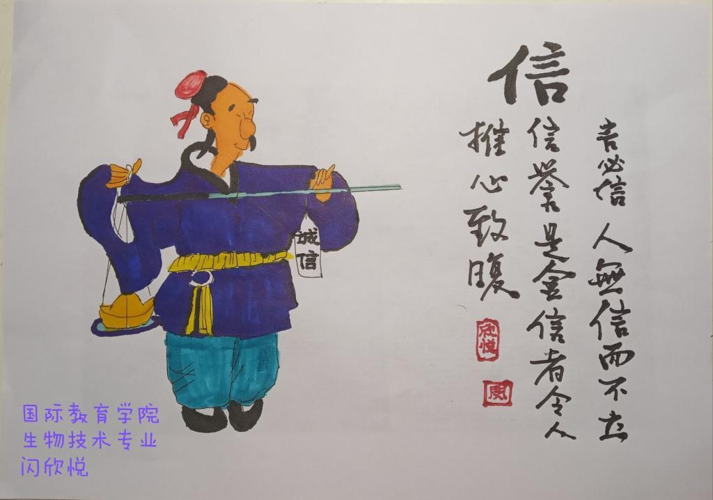 经过前期工作人员的大力宣传,同学们对以诚信文化为主题绘画活动的浓厚兴。诚信绘画作品征集活动开展以来,收到了同学们发来的很多优秀作品。在这些优秀的绘画作品中,“人无信不立”、“言必行,行必果”等名人名言以及“城门立柱”等历史故事被同学们用漫画、国画的方式展现出来。