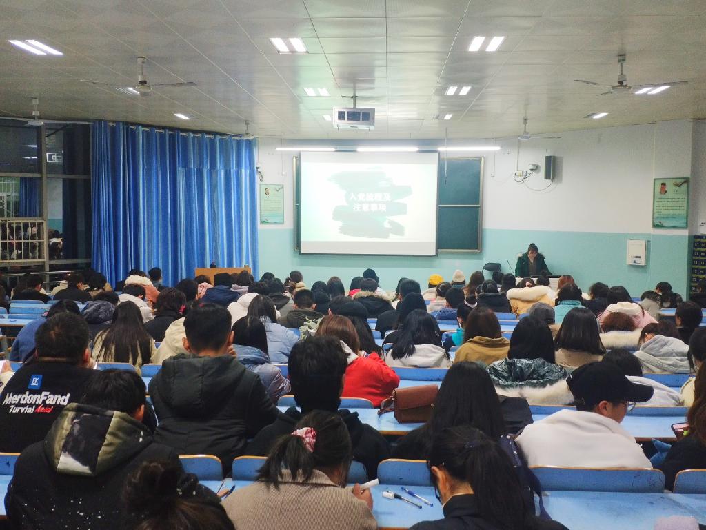 谷少云首先介绍了入党相关流程,重点向大家具体说明了大学生入党的基本条件,希望同学们能够努力学习,积极参加各项活动,为入党创造条件。接着带领大家共同学习了中国共产党章程,引导大家进一步增强党章意识,端正入党动机,树立为共产主义事业奋斗终身的理念。