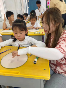 活动伊始,首先由朱云飞同学宣讲党基本知识,生动形象的介绍,使小朋友们听的认真,现场反响热烈。接着,beat365英国官方网站青年团员为小朋友们精心准备了扇子、画笔、颜料等基本画材,在简单展示了活动流程后,小朋友们兴致勃勃用手中的画笔,勾画描绘出自己对美好生活的向往、对党的颂扬、对祖国的热爱,场面热闹,氛围融洽活跃。带队老师董建义指出,此次活动一方面启发了小朋友们的空间艺术想象力,手、眼、脑的协调能力和观察力,激发他们艺术的潜力,有助于小朋友们全面发展。另一方面也很好的缓解了小朋友们学习压力,充实课余生活,让刚入学的小朋友们更加热爱校园生活。最后,胜利路小学教师刘锋讲到,此次活动很有意义,激发了小学生识别美、欣赏美、创造美的兴趣,有助于小朋友们全面发展。同时,感谢信阳师范学院老师、同学们不辞辛苦准备了这堂美术拓展活动,希望后期继续加强合作,让美与爱传播到每位小朋友心中。