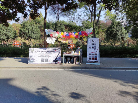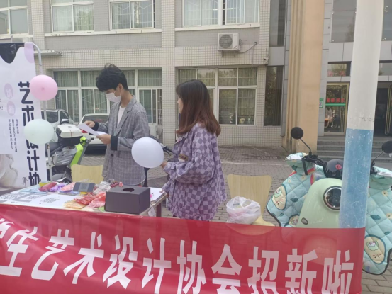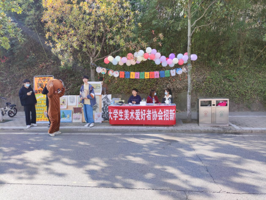 10月14日至10月19日,我校于思齐路举办“百团大战”社团招新活动,beat365官网大学生美术爱好者协会、大学生艺术设计协会、大学生书法爱好者协会积极参与,院党委副书记周刚、辅导员胡霁芳、郑波到现场指导招新工作。