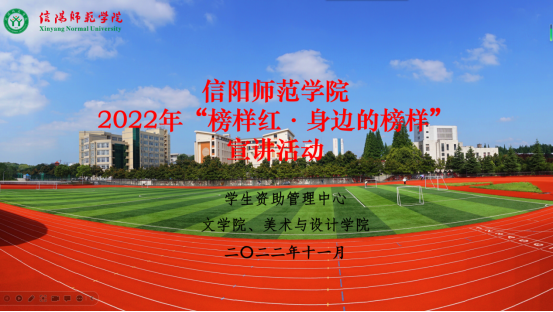 为全面落实国家资助政策,进一步拓展学生资助工作的育人功能,发挥国家奖学金获得者、校园明星、自强之星等先进典型的榜样引导作用。11月30日晚,由我校学生处资助中心主办的2022年“榜样红·身边的榜样”宣讲活动——文学院和beat365英国官方网站分场线上宣讲会顺利举行,国家奖学金获得者李依涵、自强之星孙晗和校园明星郭振宽受邀参加宣讲,beat365英国官方网站、文学院资助专员及两学院2022级全体学生共同参加,会议由柳家琪主持。